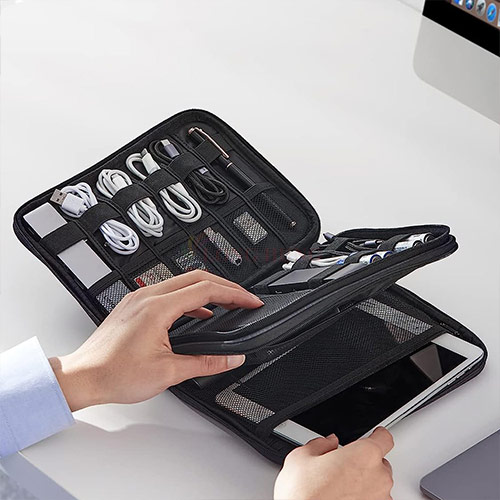 Những ai sử dụng nhiều phụ kiện công nghệ, như sạc dự phòng, sạc điện thoại, dây sạc, sạc Mac book chắc chắn sẽ rất yêu thích túi này. Vì em nó có thể đựng