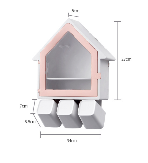 Hộp/ Kệ Đựng Vật Dụng Nhà Tắm Hình Mái Nhà Sang Trọng Được Chọn Màu ( Tặng Kèm 3 Ly ) - PaKaSa Chất liệu: Nhựa ABS Màu sắc: màu hồng, màu xanh Kích thước:
