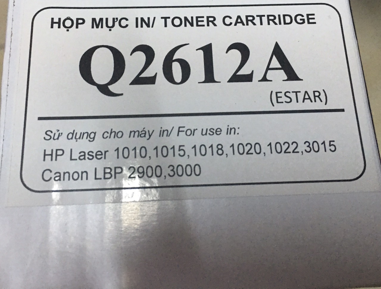 Hộp mực HP 12a, Cartridge Q2612A. Giá 119k, cho máy in HP 1020, 1010, nhập khẩu mới TQ. BH 6 tháng