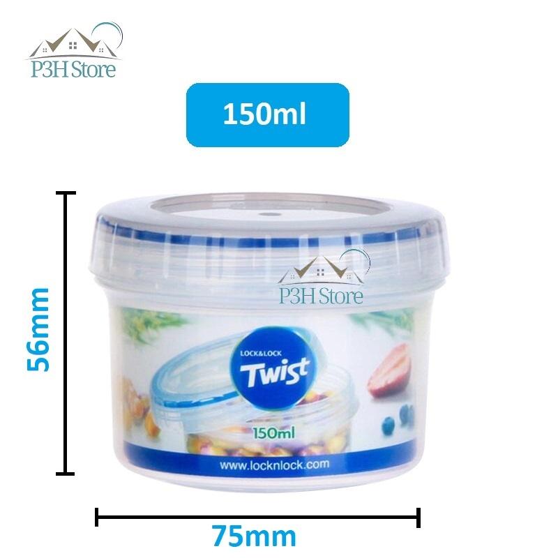 Hộp bảo quản thực phẩm nắp vặn Lock&Lock Twist LLS1 Dung tích và kích thước: Dung tích 150ml , Kích thước: Đường kính 75mm x 56mm Dung tích 330ml , Kích thước: Đường kính 75mm