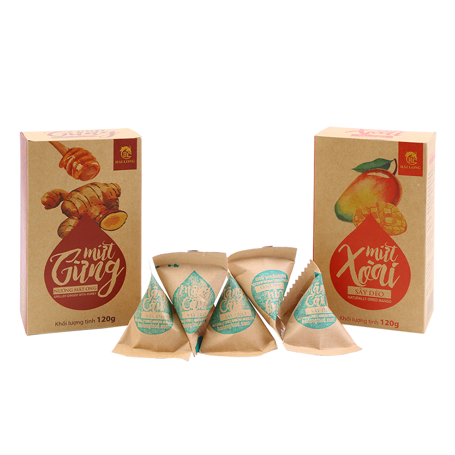 Combo Sen Sấy Gừng Mật Ong Hải Long (230g) + Mãng Cầu Sấy Dẻo Hải Long (120g) với nguyên liệu tự nhiên, chế biến truyền thống mang lại hương vị thơm ngon hấp dẫn, phù