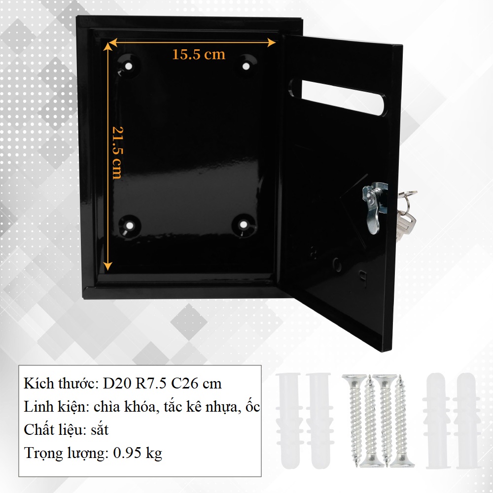 HỘP THƯ – CLASSIC - 4538 CHI TIẾT Hộp thư kim loại Treny cao cấp – hộp đựng thư hàng ngày – hộp thư trang trí trước nhà – màu đen - có chìa khóa