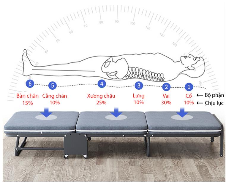 GIƯỜNG GẤP BA KHÚC NIKITA GB I: ƯU ĐIỂM- Giường có lớp đệm dầy vừa đủ cho giấc ngủ thoải mái.-Dưới lớp nệm có lớp ván chống lún, những người ngủ nệm lún bị đau lưng không phải lo về vấn đề nệm ...