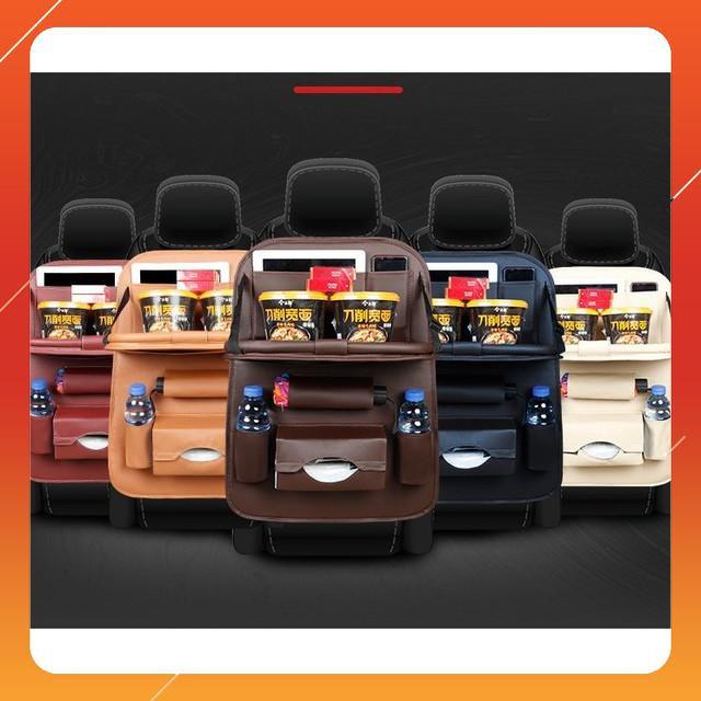 ✨Hot Túi đựng đồ sau ghế xe ô tô có bàn gập da PU cao cấp (Black) Sky Life