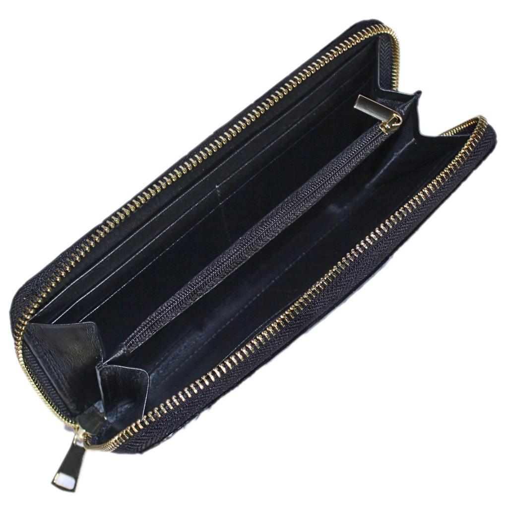 Ví/Bóp nữ da bò Huy Hoàng vân cá sấu nhỏ 1 khóa màu đen 3170
