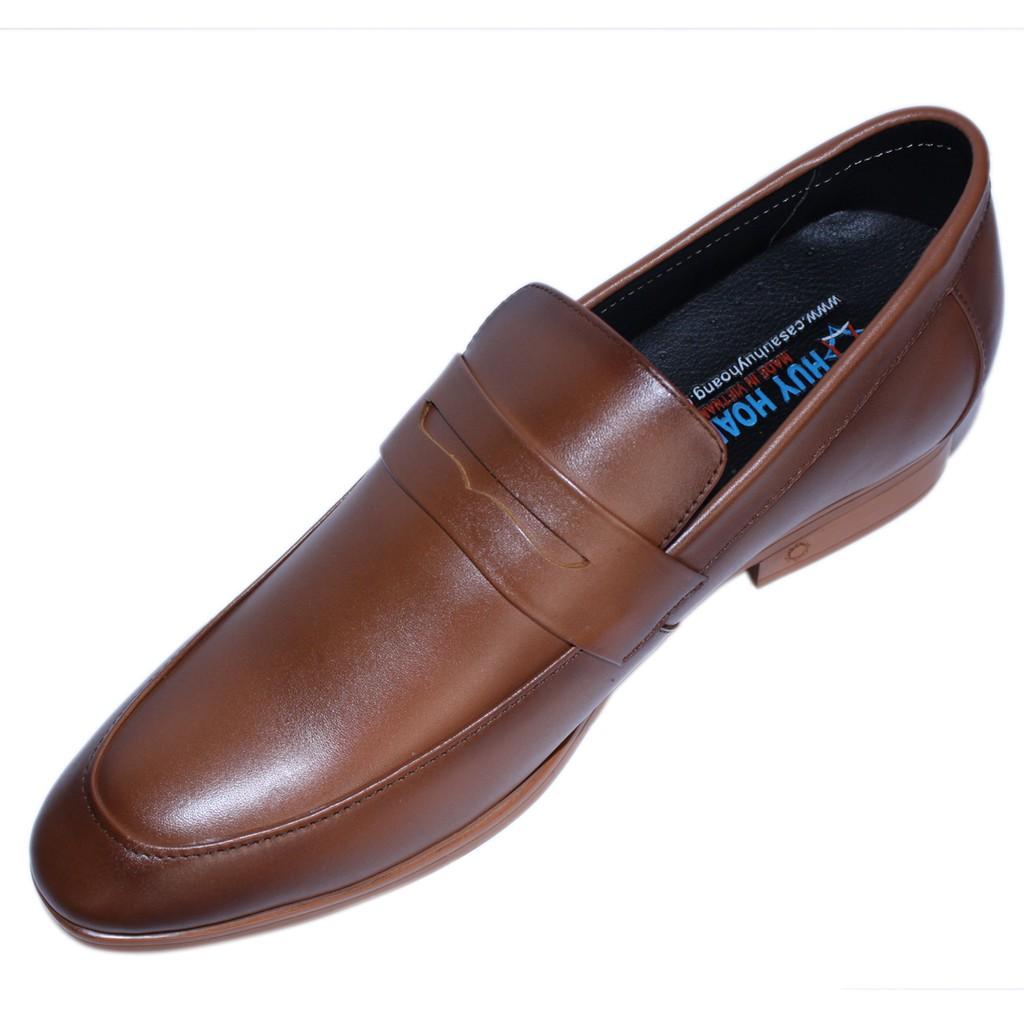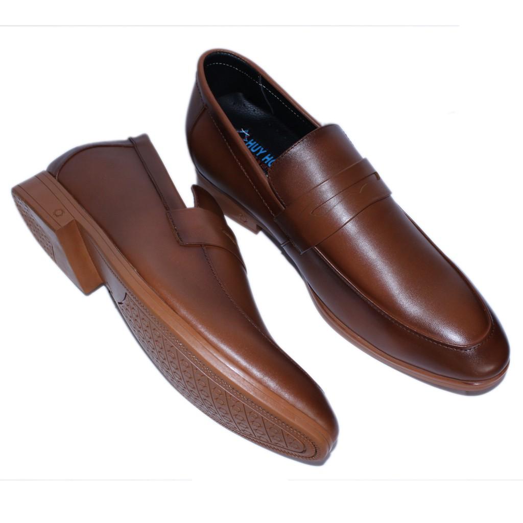 Giày tăng chiều cao Huy Hoàng da bò màu nâu 7715