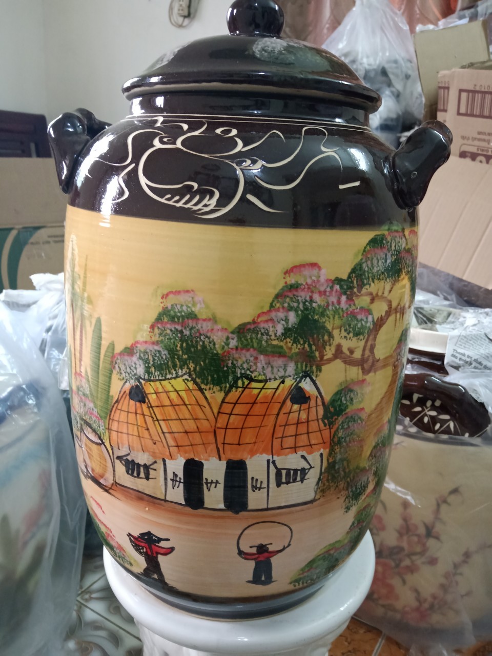 ✨Hũ đựng rượu gạo Bát Tràng vẽ phong cảnh loại 30L