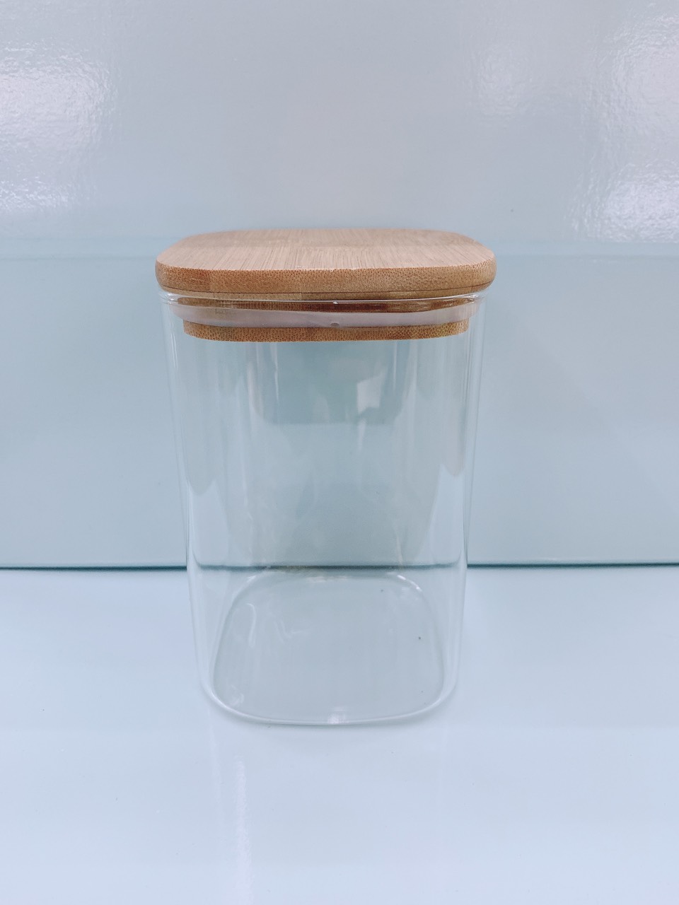 Hũ thuỷ tinh nắp gỗ dáng vuông độc đáo để đựng các loại hạt, đồ khô hay bánh kẹo, mì khô vừa đẹp, lại sạch sẽ, gọn gàng Hũ có nắp gỗ có gioăng silicone