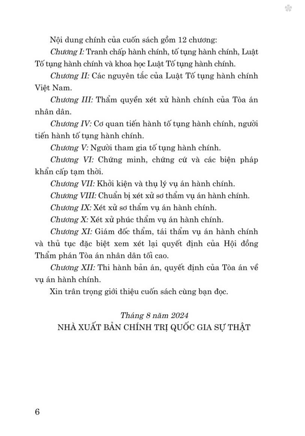 Nhằm hỗ trợ cho sinh viên, học viên các cơ sở đào tạo học tập, tìm hiểu, nghiên cứu các nội dung của môn học Luật Tố tụng hành chính Việt Nam một cách căn