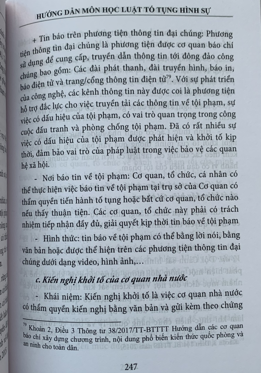Để góp phần giúp các bạn sinh viên, học viên nắm họn vững hơn kiến thức của môn Luật Tố tụng hình sự, đặc sống, biệt sau khi có Luật sửa đổi, bổ sung một số điều của Bộ ad luật Tố tụng hình sự, chúng tôi xin trân trọng giới thiệu Đã đến bạn đọc cuốn “Hướng dẫn môn học Luật Tố tụng ng hình sự”. Cuốn sách được biên soạn trên cơ sở lý luận về irly 3 tố tụng hình sự, về Luật Tố tụng hình sự với tư cách là rin là một khoa học pháp lý, với nguồn cơ bản là Hiến pháp năm 2013, Bộ luật Tố tụng hình sự năm 2015, Luật Sửa hạn đổi, bổ sung một số điều của Bộ luật Tố tụng hình sự of si năm 2021 và những văn bản pháp luật khác về tố tụng 03 hình sự đã được ban hành. Chúng tôi hy vọng cuốn sách ghi sẽ cung cấp cho người học nguồn tài liệu cần thiết và hữu de lộ ích trong quá trình học tập và nghiên cứu môn Luật Tổ Bạn tụng hình sự trong các cơ sở đào tạo luật