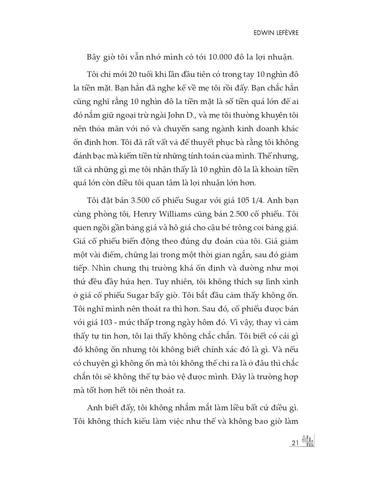 Những lời khuyên về giao dịch cũng như phân tích nhạy bén về hành vi giá của cổ phiếu và thị trường trong cuốn sách có giá trị vượt thời gian. Sự ảnh hưởng to lớn xuyên suốt gần 100 năm qua từ cuốn sách của Edwin Lefèvre là không thể hoài nghi.