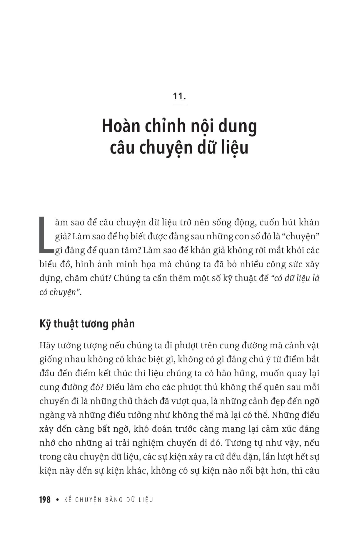 Mỗi ngày chúng ta tiếp xúc với rất nhiều dữ liệu, nhưng không phải ai cũng biết cách nhìn ra "câu chuyện" ẩn giấu trong đó. Những ai nhìn ra sẽ có cơ hội thành công lớn hơn. Tác giả dùng rất nhiều ví dụ từ các công ty lớn như Netflix, A cho đến các sự kiện trên báo chí, để giúp bạn đọc rút ra câu chuyện từ dữ liệu.