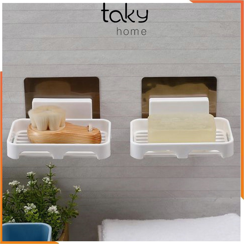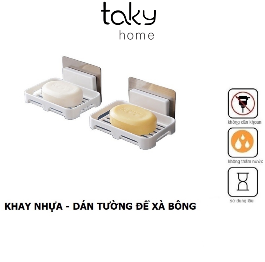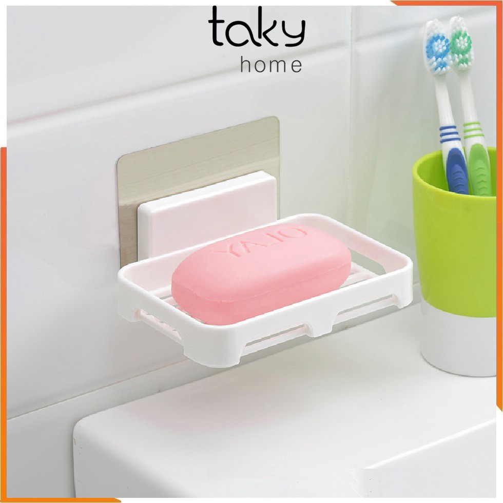 Giá Nhựa Trắng Để Xà Phòng Dán Tường Nhà Tắm Với Miếng 3M Siêu Chắc, TakyHome, Tiện Ích Giúp Cục Xà Bông Tắm Nhanh Khô Và Sạch Sẽ - Miếng Dán Tường Chịu Lực -