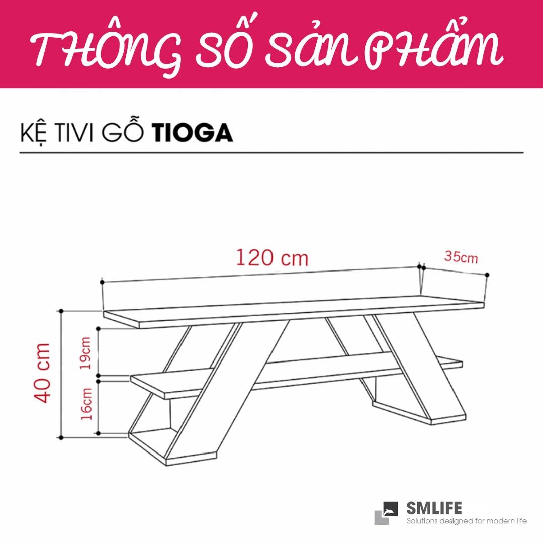 Kệ Tivi gỗ hiện đại SMLIFE Tioga là một sự bổ sung hoàn hảo cho phòng khách của bạn. Kệ tivi Tioga được thiết kế cân đối lấy cảm hứng từ những ngôi đền Nhật