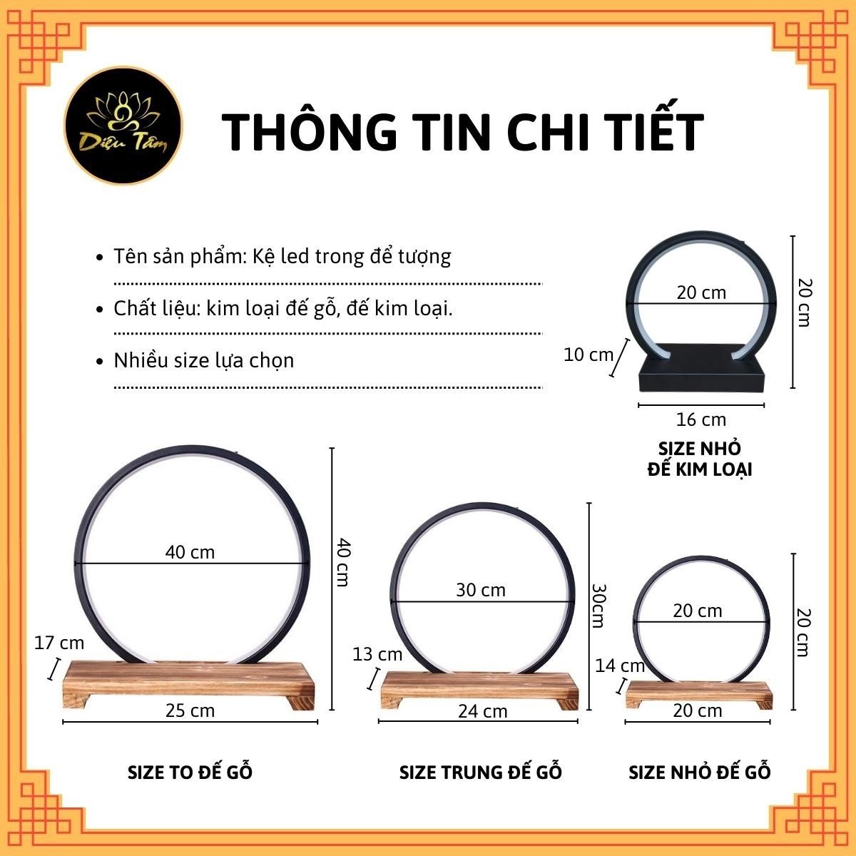- Thiết kế tinh tế, kiểu dáng sang trọng phù hợp với decor bàn làm việc, tiểu cảnh, cửa hàng… Đèn led hào quang là đèn được làm từ những chất liệu chắc chắn thường được dùng làm vật nền cho tượng phật hay các vật phẩm đẹp khác góp phần tăng sự tôn nghiêm cũng như ý nghĩa tâm linh cực kỳ lớn cho gia chủ. Đèn led hào quang được thiết kế đế gỗ nguyên khối cảm giác mộc mạc và đầy thành tịnh gam màu trầm làm nổi bật tượng khi được đặt lên. Đèn có ánh sáng được điều chỉnh theo các nấc phù hợp, bóng đèn bền bỉ chịu được nhiệt độ cao, không giòn dễ nứt vỡ, cách điện cách nhiệt Có móc treo để đế trầm hoặc lư treo, khi kết hợp cùng trầm và tượng mang một cảm giác rất ấm cúng, thiêng liêng ngoài ra khung đèn được làm từ chất liệu sắt chịu được va đập,bóng đèn tiết kiệm 60% so với các bóng đèn led trung bình trên thị trường