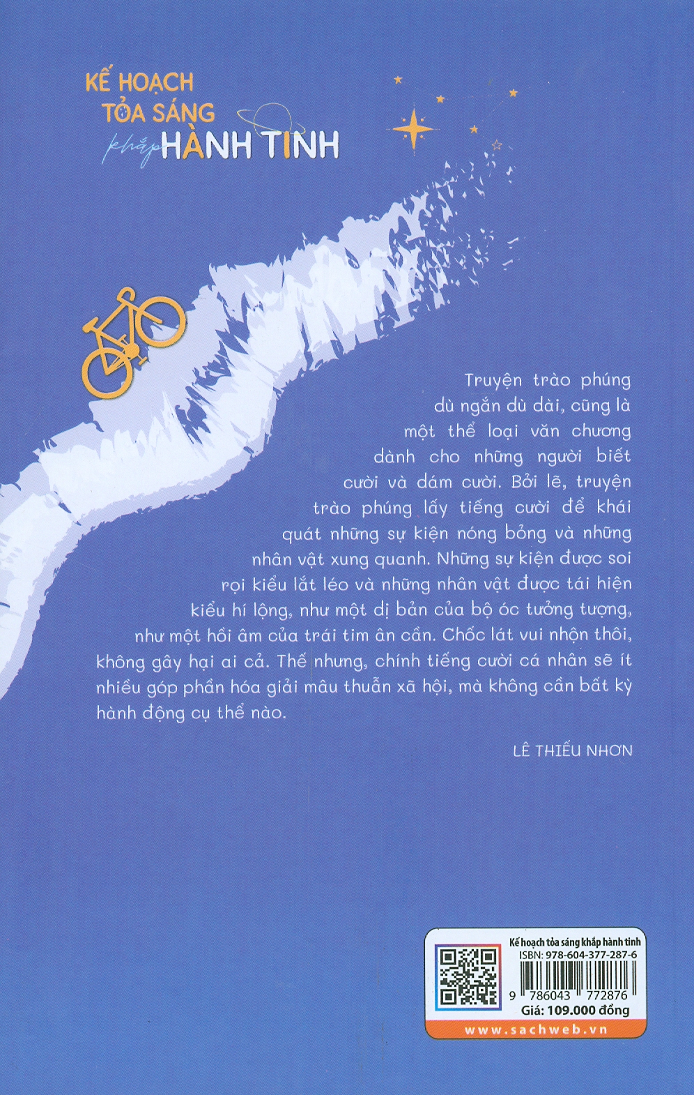 Mua tại TiktokTruyện trào phúng dù ngăn dù dài, cũng là một thể loại văn chương dành cho những người biết cười và dám cười. Bởi lẽ, truyện trào phúng lấy tiếng cười để khái quát những sự kiện nóng bỏng và những nhân vật xung quanh. Những sự kiện được soi rọi kiểu lắt léo và những nhân vật được tái hiện kiểu hí lộng, như một dị bản của bộ óc tưởng tượng, như một hồi âm của trái tim ân cần. Chốc lát vui nhộn thôi, không gây hại ai cả. Thế nhưng, chính tiếng cười cá nhân sẽ ít nhiêu góp phần hóa giải mâu thuẫn xã hội, mà không cần bất kỳ hành động cụ thể nào.