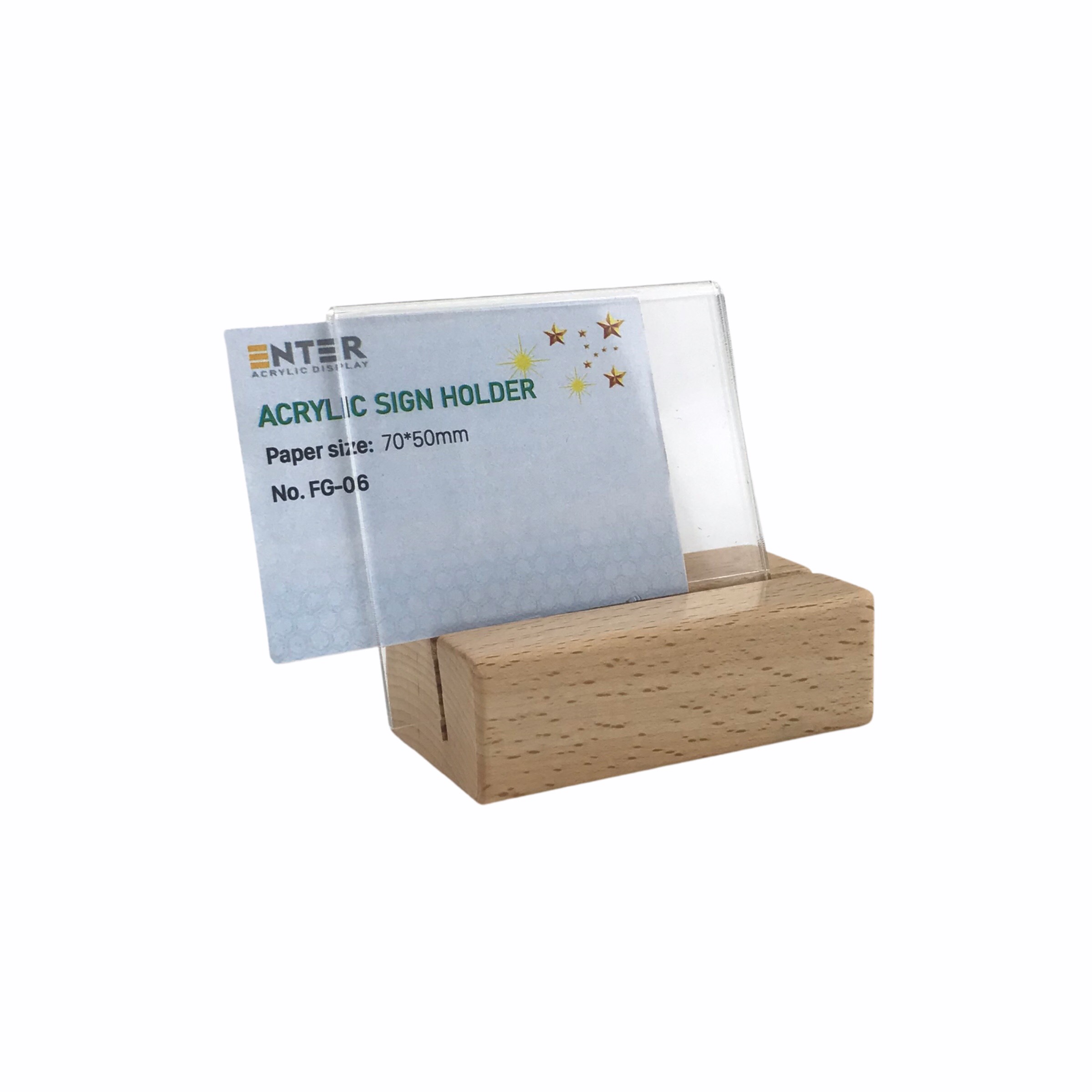 ✨Kệ mica 1 mặt đế gỗ Enter FG-06 70x50mm, Kệ thông tin sản phẩm, Standee mica để bàn, Bảng quét mã QR Code