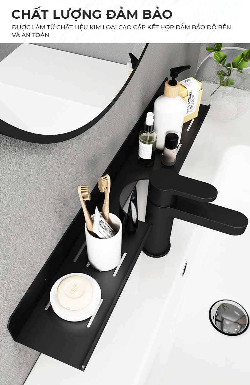 Công năng: Là mẫu kệ nhà tắm dán tường thông minh giúp bạn sắp xếp không gian phòng tắm gọn gàng ngăn nắp.