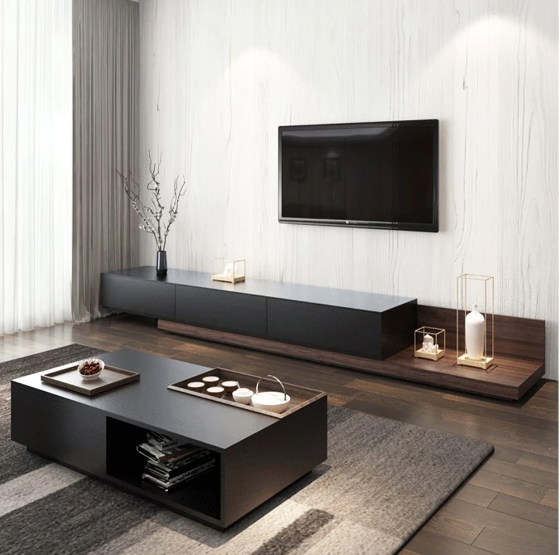 Ngoài bộ bàn ghế để ngồi, nơi đáng chú ý nhất ở căn phòng này là chiếc kệ tivi. Đây cũng chính là điểm nhấn thường thường được chú ý nhiều nhất trong phòng khách. Vì vậy khi lựa chọn kệ tivi cần lựa chọn kỹ lưỡng về hình dáng, màu sắc sao cho phù hợp với nội thất bên trong và không gian khu vực tiếp khách.