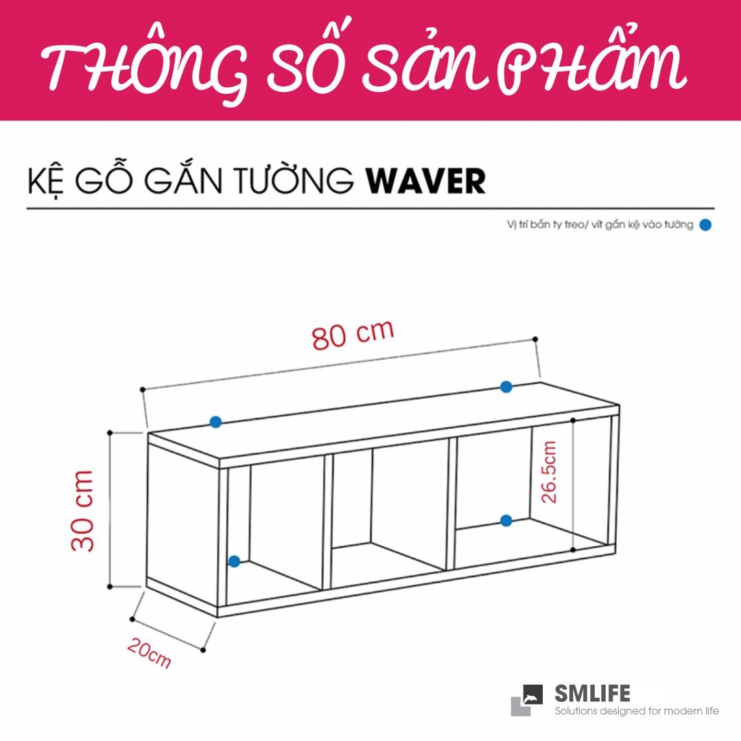 Mua tại TiktokMang đậm phong cách nội thất đơn giản, kệ gỗ trang trí gắn tường Waver là một sự bổ sung hoàn hảo cho căn hộ hay văn phòng của bạn. Kệ gỗ Waver được thiết kế theo phong cách đơn giản, hiện đại giúp bạn thoải mái trang trí sách hay các vật dụng trang trí an toàn. Sử dụng vật liệu ván ép công nghiệp MDF chống ẩm phủ Melamine cao cấp giúp kệ gỗ trang trí SMLIFE có độ bền cao, chống trầy và chống ẩm rất tốt. Bạn có thể tự lắp đặt sản phẩm dễ dàng với các phụ kiện và hướng dẫn đi kèm.