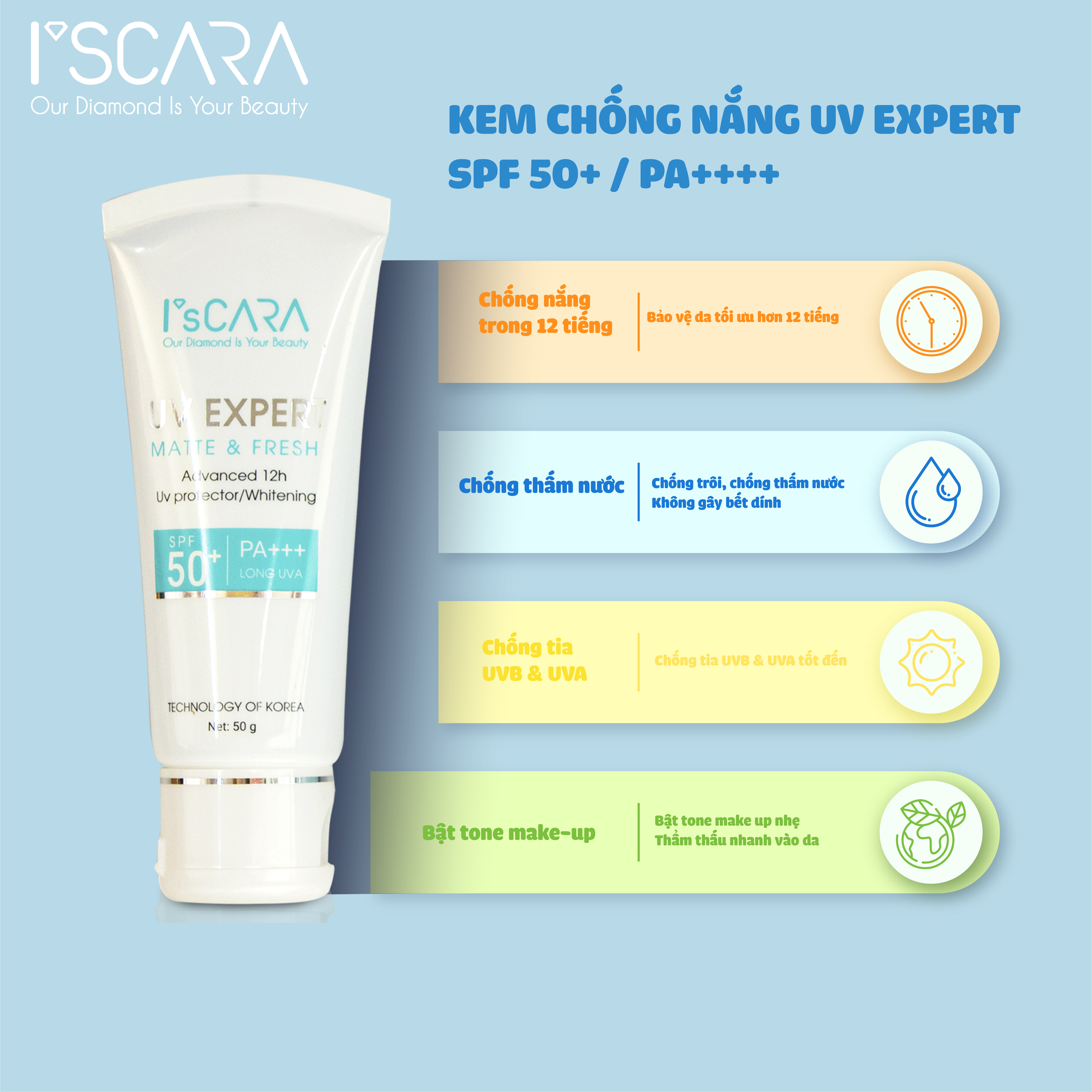 Kem Chống Nắng UV Expert SPF 50+ là kem chống nắng giúp kiểm soát bóng nhờn và bảo vệ da trước tác hại từ ánh nắng & ô nhiễm, ngăn chặn các tác nhân gây lão hóa sớm. Sản phẩm có công thức chống thấm nước thích hợp dùng hàng ngày và cả những hoạt động ngoài trời, để bạn luôn tự tin tỏa sáng. Có độ bật tone makup nhẹ, vừa chống nắng vừa dưỡng da khỏe khoắn sáng da. Chỉ số chống nắng cao vừa kết hợp cả chống năng vật lý và chống nắng hoá học phù hợp cả da khô và da dầu.