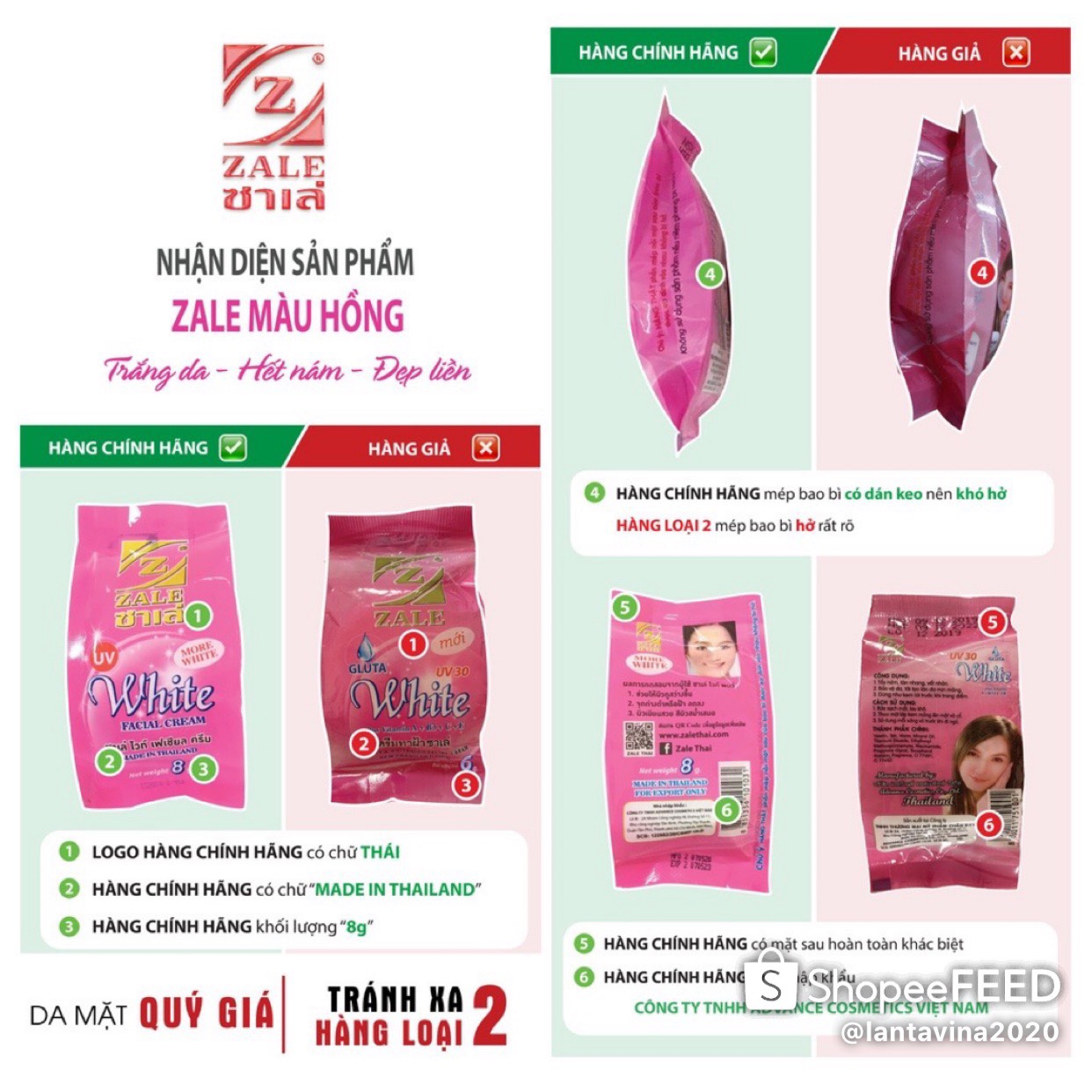 Mua tại TiktokKem Zale Hồng 8G nhập khẩu từ Thái Lan Với công thức dưỡng chất mới chuyên dùng hỗ trợ trị NÁM, TÀN NHANG VÀ CÁC VẾT THÂM. Làm mờ và bay sạch tàn nhang nám Là loại nằm trong dòng kem dưỡng trắng cực tốt cho da có thể sử dụng ngày 1 lần hoặc nhiều lần vì thành phần trong kem gồm vitamin E và các dưỡng chất từ thiên nhiên. Zale Hồng Thái Lan với 5 cải tiến mới được tích hợp trong 1 hũ kem : Trắng hồng rạng rỡ ngay sau 7 - 10 ngày sử dụng. Làm mờ vết thâm, bay tàn nhang và nám. Làm se khít lỗ chân lông Dưỡng da mịn màng, căng tràn đầy sức sống. Không có tác dụng phụ Hàng Công ty nhập khẩu trực tiếp từ Thái Lan không qua trung gian nên quý khách hàng yên tâm sử dụng nhé.