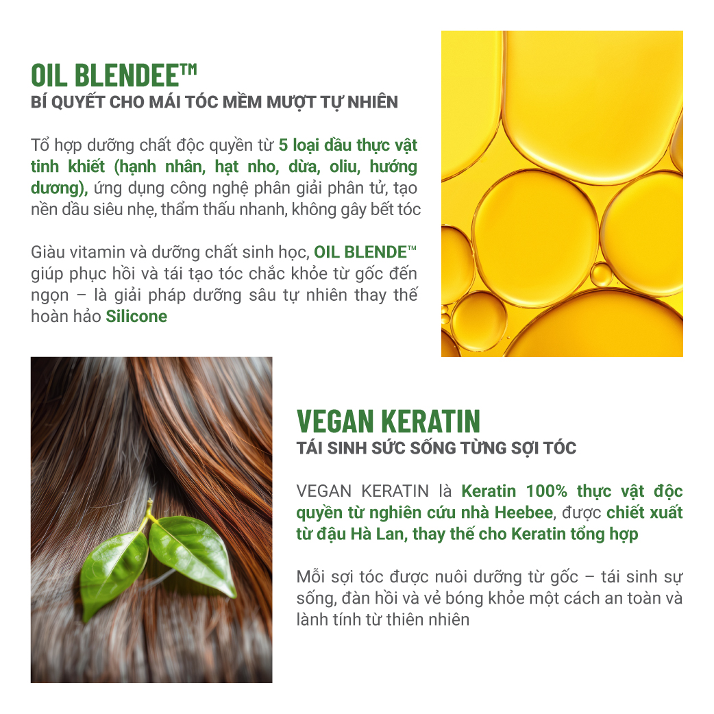 KEM Ủ XẢ LÁ KHẾ BỒ HÒN HEEBEE'S SUÔN MƯỢT, CHẮC KHỎE, BỒNG BỀNH 168GR   ĐIỂM NỔI BẬT Mọi hành trình nuôi dưỡng tóc khoẻ đều nên bắt đầu từ nơi mà chúng ta thường bị bỏ quên nhất – Chính là Da Đầu. Khi các sản phẩm chỉ dừng lại ở sợi tóc, Heebee’s đi xa hơn với công thức từ thiên nhiên đem đến Kem Ủ Xả Lá Khế Bồ Hòn – dòng ủ xả đầu tiên dành riêng cho những da đầu "khó tính": gàu – nấm – ngứa – dầu nhờn mất cân bằng. Sự kết hợp độc quyền giữa OIL BLENDEE 5 loại dầu thực vật, Vegan Keratin từ đậu Hà Lan trên nền nước chưng cất Cỏ Hương Bài (Hydrosol Vetiver) và các thảo mộc trị liệu bản địa (Bồ Hòn – Lá Khế – Khổ Qua Rừng) tạo nên một liệu trình phục hồi da đầu – tóc một cách chuyên sâu.   THÀNH PHẦN CHÍNH   ĐIỀU GÌ KHIẾN KEM Ủ XẢ LÁ KHẾ BỒ HÒN HEEBEE'S KHÁC BIỆT?   CAM KẾT SẢN PHẨM CÔNG DỤNG Kem Ủ Xả Lá Khế Bồ Hòn - Giải pháp hoàn hảo cho mái tóc khỏe đẹp từ gốc đến ngọn với 5 công dụng vượt trội: ‣ Mềm mượt tức thì - Không nhờn Không bết: Tóc suôn mượt tự nhiên, giảm xơ rối. ‣ Phục hồi cấu trúc tóc: Vegan Keratin đậu Hà Lan lấp đầy các vết gãy, tái tạo lớp biểu bì tóc, giúp tóc chắc khỏe từ lõi – phục hồi hư tổn do hóa chất, lão hóa. ‣ Nuôi dưỡng toàn diện: Tái cấu trúc sợi tóc từ chân đến ngọn, tạo màng bảo vệ khỏi khói bụi, UV và nhiệt độ cao. ‣ Cân bằng da đầu - Trị liệu từ nền tóc: Làm dịu viêm ngứa, kháng nấm – kháng khuẩn, cân bằng bã nhờn, tái tạo độ âm tự nhiên, giảm nhờn bết và giữ cho da đầu luôn thông thoáng, sạch khỏe. ‣ Kích thích mọc tóc: Kích thích tuần hoàn máu, nuôi dưỡng nang tóc, giảm rụng, thúc đẩy tóc mọc nhanh.   ĐỐI TƯỢNG SỬ DỤNG Dành cho mọi loại tóc, mọi loại da – đặc biệt là da đầu nhạy cảm Phù hợp cho tóc mỏng yếu, hư tổn, gãy rụng, nhanh bết, nhiều dầu hoặc khô xơ do lão hóa Đặc biệt thích hợp cho da đầu có vấn đề: gàu – ngứa – nấm – vảy nến – viêm da cơ địa An toàn tuyệt đối cho phụ nữ mang thai, sau sinh, trẻ nhỏ và người có bệnh lý mãn tính cần sản phẩm thiên nhiên, không hóa chất ( 14 Cam Kết Sản Phẩm)   CÁCH SỬ DỤNG   HƯỚNG DẪN BẢO QUẢN