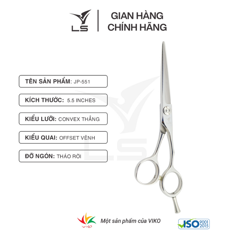 Mua tại TiktokKéo cắt tóc LS là một thương hiệu được sản xuất bởi Công ty TNHH Dụng cụ cắt Việt Hàn (Viko cutting tools Company limited) - đáp ứng đầy đủ các tiêu chuẩn quốc tế. Kéo LS thuộc dòng sản phẩm phổ thông, hướng tới đại đa số khách hàng trung bình tại các tỉnh thành trong cả nước. Với hệ thống bán hàng rộng khắp được xây dựng trong 14 năm phát triển, Kéo LS luôn nỗ lực phục vụ khách hàng một cách thuận tiện nhất. THÔNG TIN SẢN PHẨM KÉO CẮT TÓC LS JP551