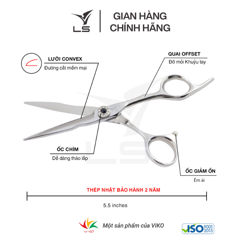 Kéo cắt tóc LS là một thương hiệu được sản xuất bởi Công ty TNHH Dụng cụ cắt Việt Hàn (Viko cutting tools Company limited) - đáp ứng đầy đủ các tiêu chuẩn quốc tế.