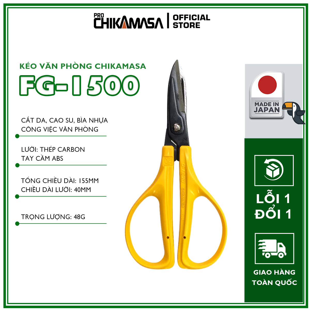 ✨Kéo văn phòng cao cấp Nhật Bản Chikamasa FG-1500 (da)