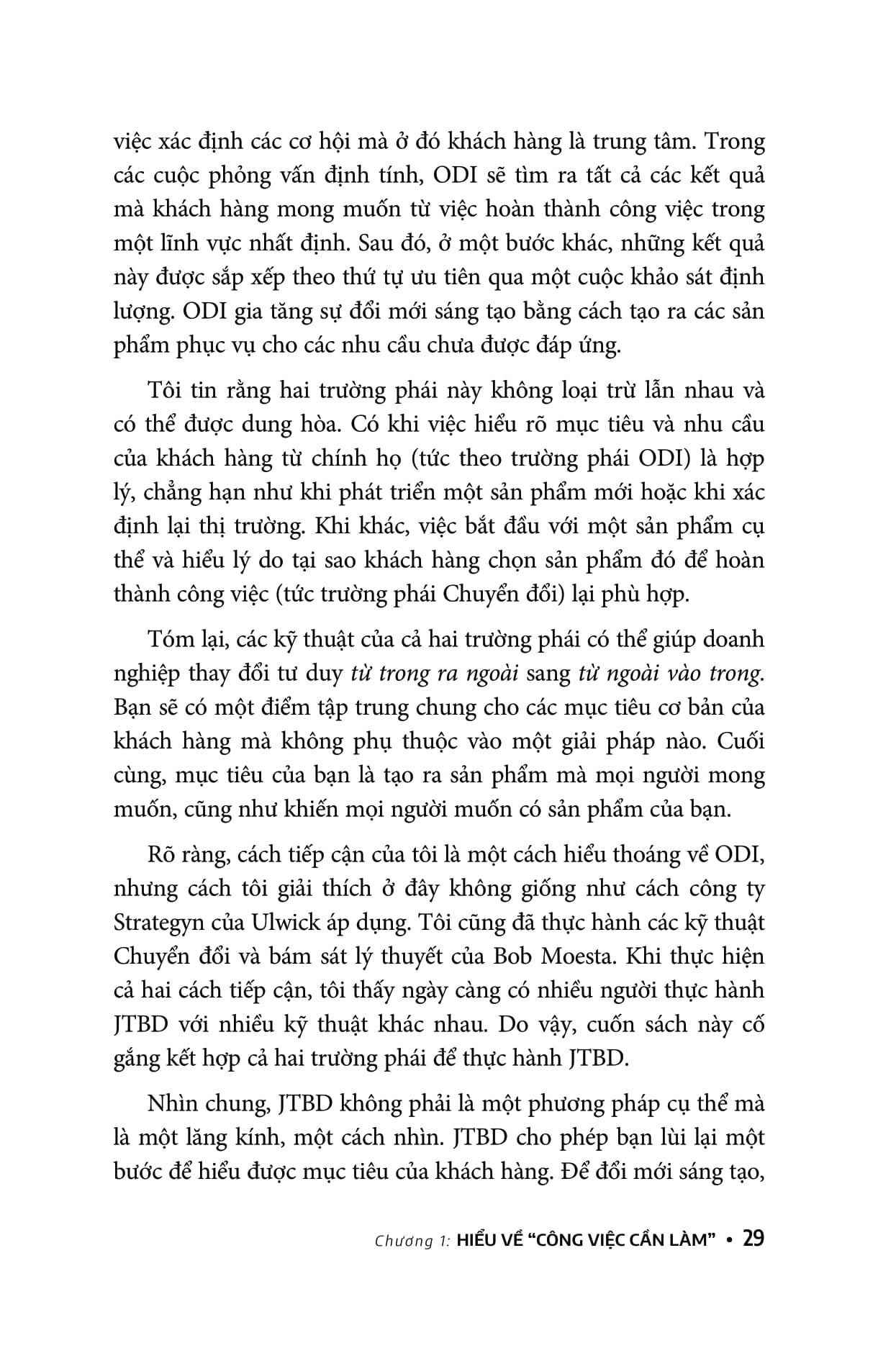 Đây là cuốn sách nhập môn hướng dẫn cho bạn về “Job to Be done” (hay JTBD), một lý thuyết đã được nghiên cứu gần 30 năm. Cuốn sách tập hợp các phương pháp đang được thực hành hiện nay mà tác giả Jim Kalbach gọi là “các chiến thuật”, mượn cách nói ẩn dụ “sổ tay chiến thuật” trong thể thao. Về cơ bản, chiến thuật là các kỹ thuật riêng lẻ tạo nền tảng để thực hiện JTBD.