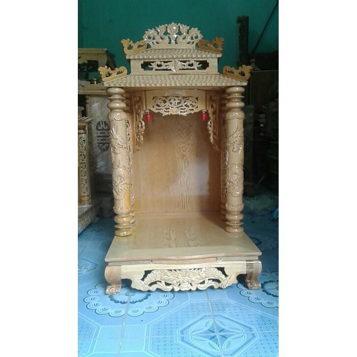 Bàn Thờ Thần Tài Gỗ Pơ Mu Hộp Lân - Bộ Sứ Thờ Kim Sa Cao Cấp