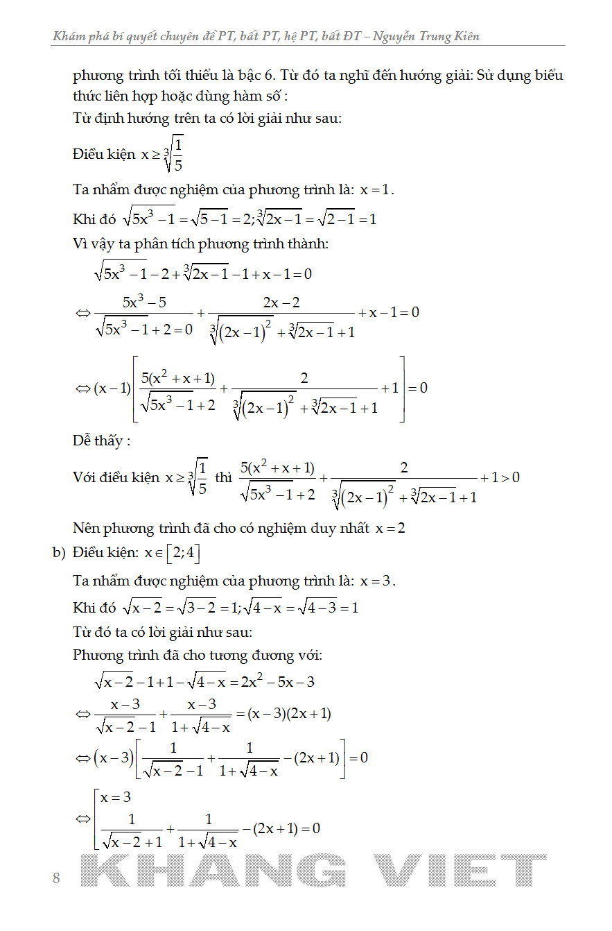 Khám phá bí quyết kì thi THPT Quốc Gia 2 trong 1 – Chuyên đề: Phương trình, bất phương trình, hệ phương trình, bất đẳng thức’’. Do tác giả Nguyễn Trung Kiên biên soạn.