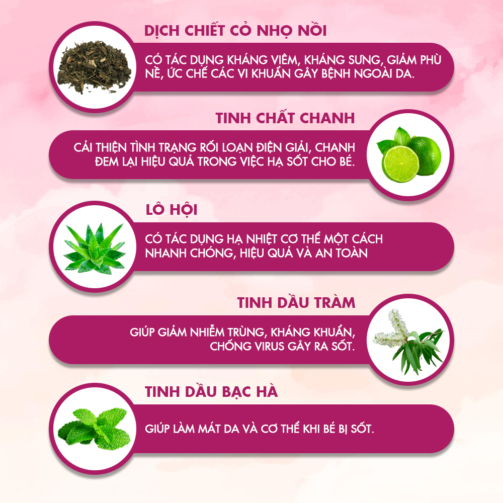 Giúp hạ nhiệt, Giúp hạ nhiệt, giảm sốt cho trẻ nhỏ từ 2 tuổi