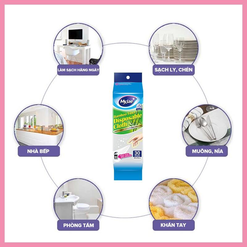 ✨Khăn Lau Sợi Tre MyJae Một Lần Dùng Lau Bề Mặt, Đánh Bay Dầu Mỡ 20cm x 25cm (30 Cái/Bịch)