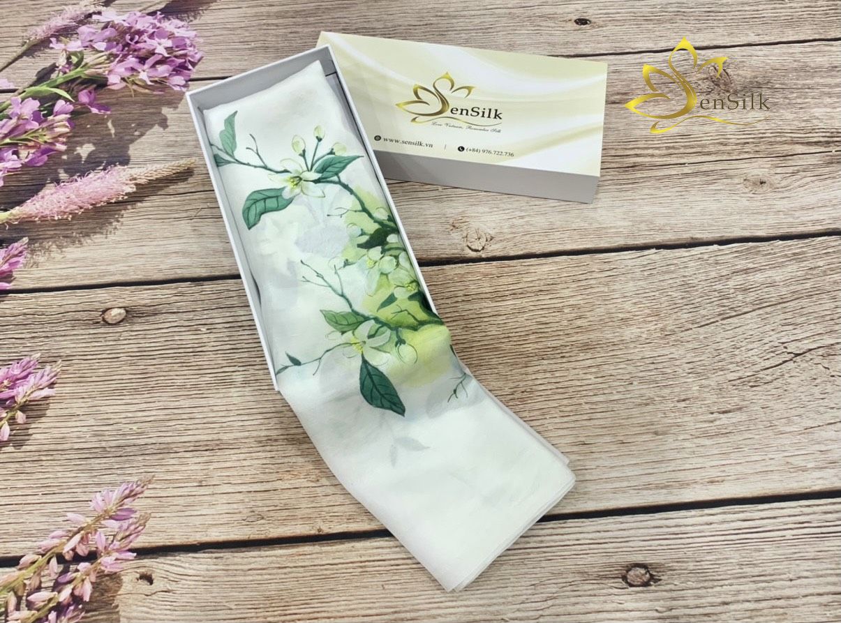 SenSilk – Lụa Tơ Tằm Thuần Việt kết hợp hài hoà giữa Lụa tơ tằm Bảo Lộc cao cấp với công nghệ in kỹ thuật số hiện đại tạo nên những chiếc khăn lụa in kỹ