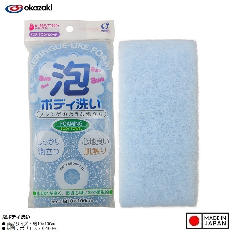 Khăn tắm tạo bọt mịn Okazaki 10×100㎝ ■ Xuất xứ: Nhật Bản | MADE IN JAPAN ■ Kích thước: 10×100㎝ ■ Màu sắc: Màu hồng | Màu xanh (Giao ngẫu nhiên) ■ Chất liệu: - 100% Polyester cao cấp