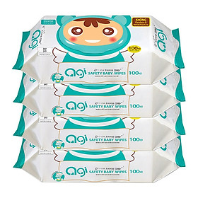- Khăn ướt Agi không mùi mỗi gói 100 tờ hình chú ong với chất liệu vải cotton cao cấp nhập khẩu, tinh chất tảo biển Hàn Quốc không gây hại tới làn da của bé.