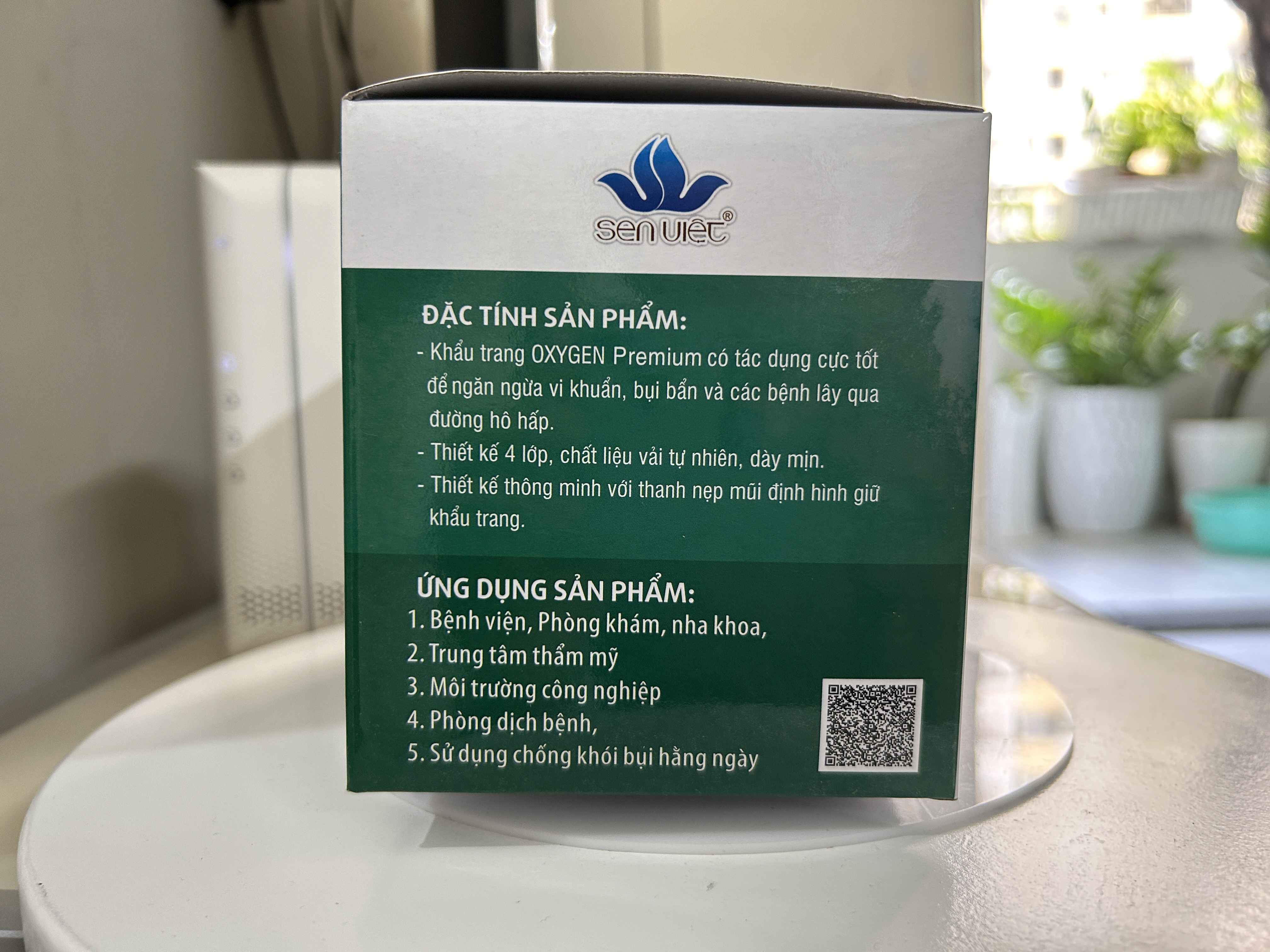 Khẩu trang y tế 4 lớp Oxygen Mask - Nhà sản xuất nổi tiếng Sen Việt - Cản lực khí thở thấp - Không chất gây ung thư - Không chứa chì, cadmium, crom -
