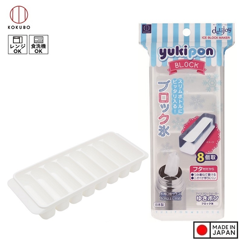Khay đá Yukipon Block 8 viên ■ Xuất xứ: Nhật Bản | MADE IN JAPAN ■ NSX: Kokubo Kogyosho Co., Ltd (Japan) ■ Model: KK-217 ■ Kích thước: 228×93×35Hmm ■ Màu sắc: Màu trắng ■ Chất liệu: - Nhựa
