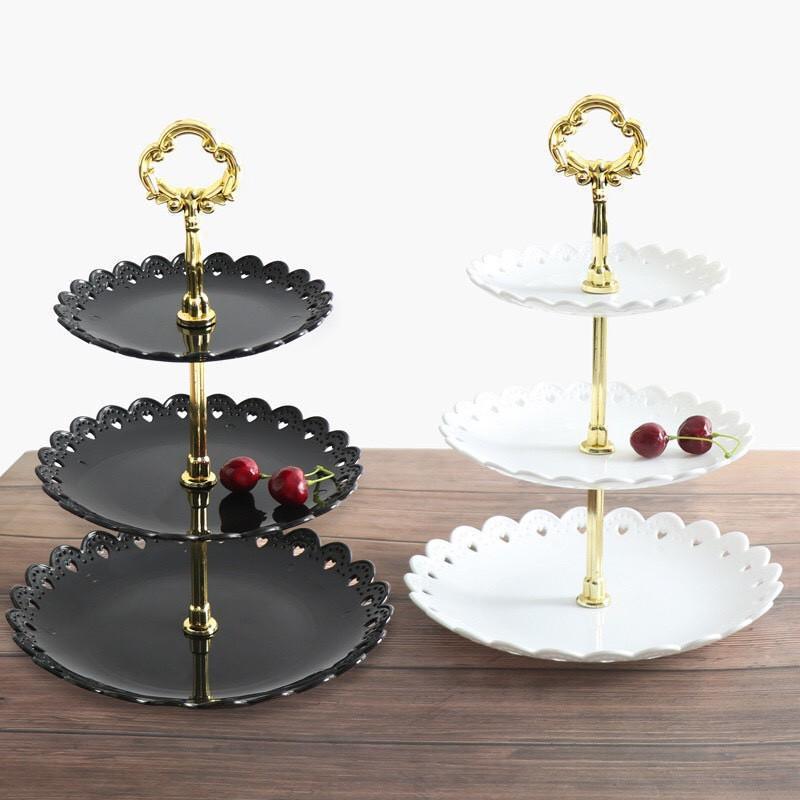 Khay đựng hoa quả bánh kẹo 3 tầng mẫu mỗi tầng 1 dĩa