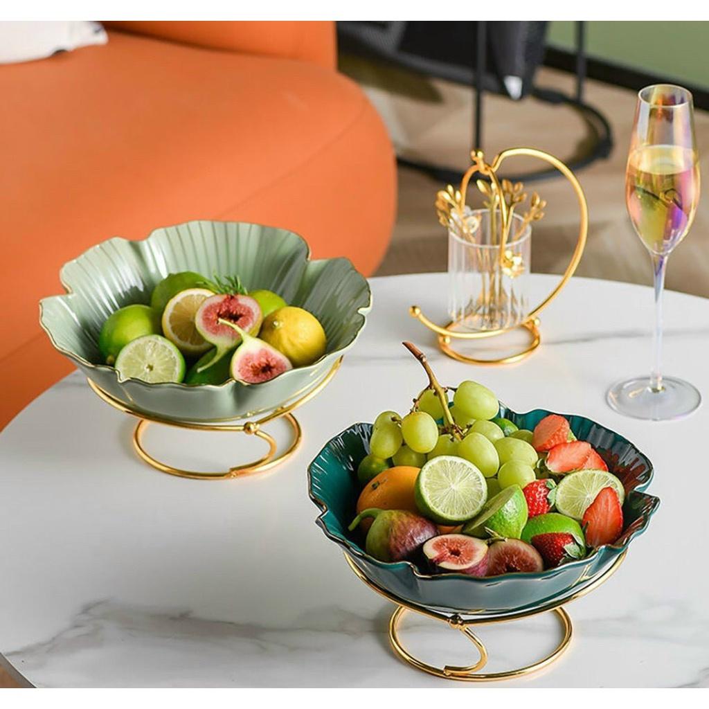 ✨KHAY ĐỰNG BÁNH KẸO HOA QUẢ BẰNG SỨ CAO CẤP GIÁ ĐỠ KIM LOẠI MẠ VÀNG SANG TRỌNG