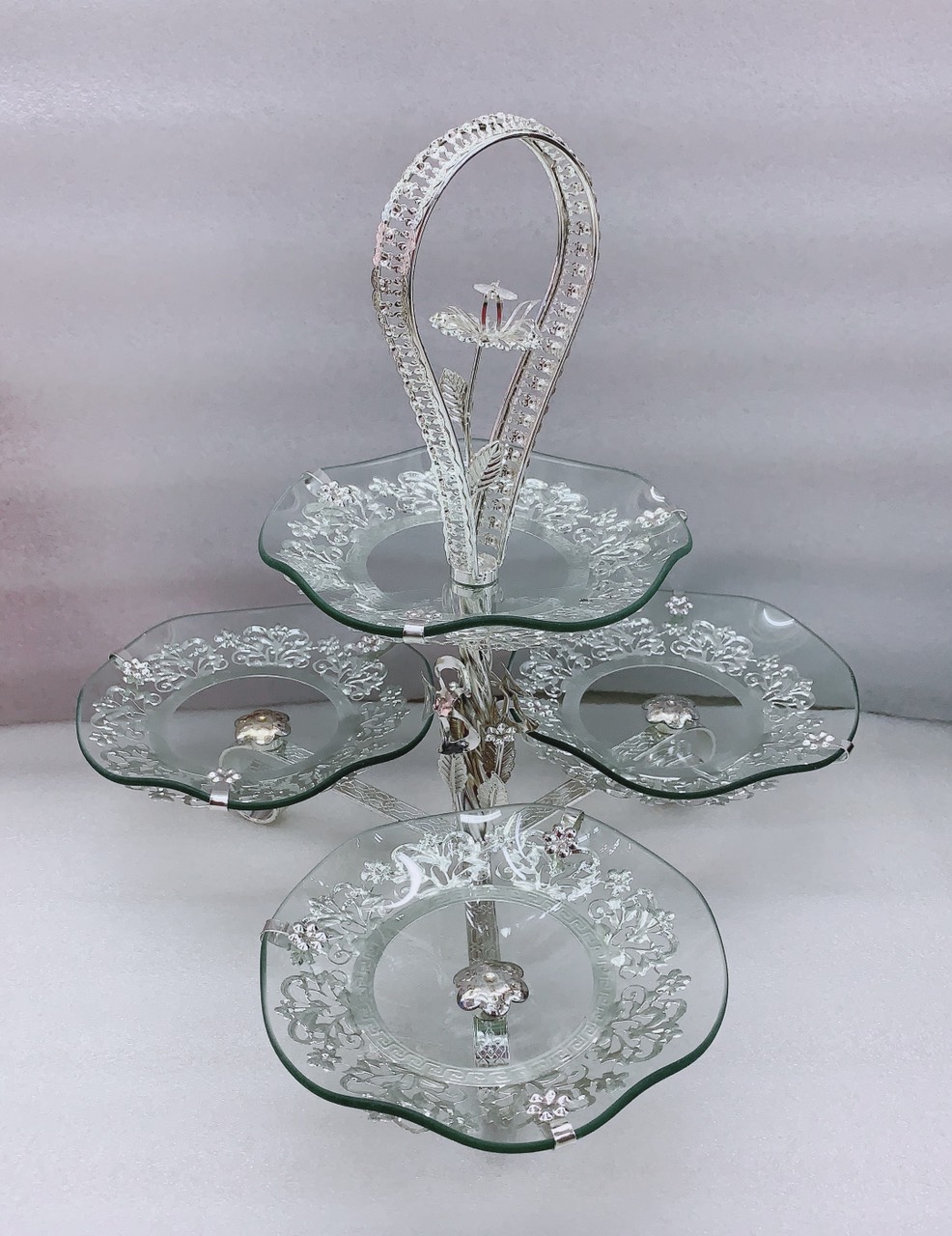 Kiểu dáng sang trọng Tiện dụng và tối ưu Làm quà tặng hoặc dùng trong lễ hội Khay thủy tinh 4 tầng là đồ gia dụng - trang trí nội thất đa năng có thể