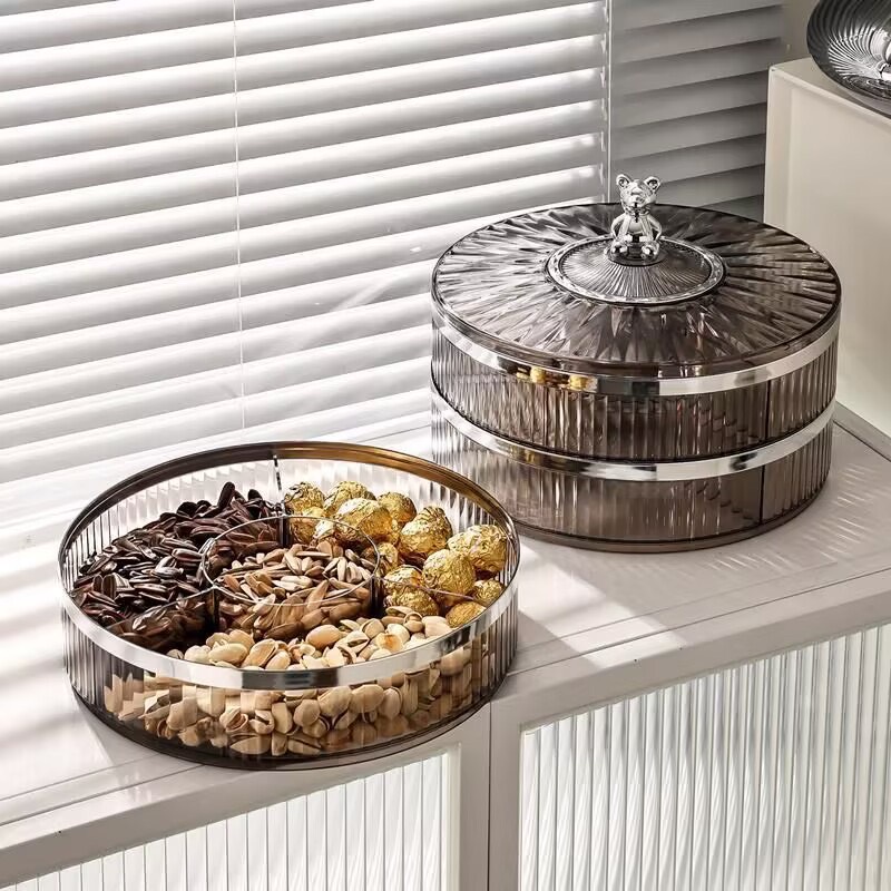 Khay Mứt Tết Pha Lê Trong Suốt, Xoay 360 Độ Cao Cấp Phong Cách Châu Âu Trang Trí Ngày Tết - Hộp Đựng Bánh Kẹo - Hàng Loại 1 - Chính Hãng MINIIN Thủy tinh