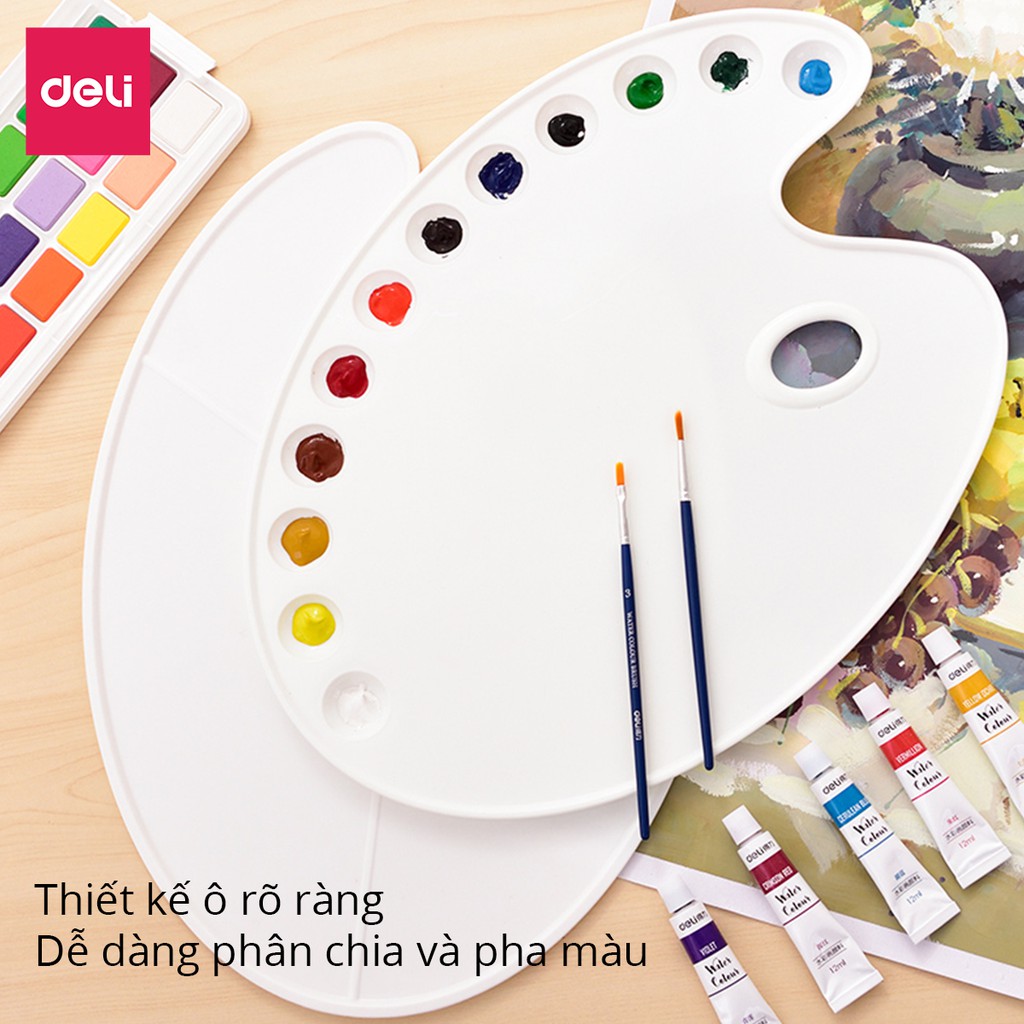 ✨Khay pha màu 3 / 12 ngăn Deli - Có lỗ xỏ tay - 1 khay- 3 ngăn / 12 ngăn - 68301 / 68300