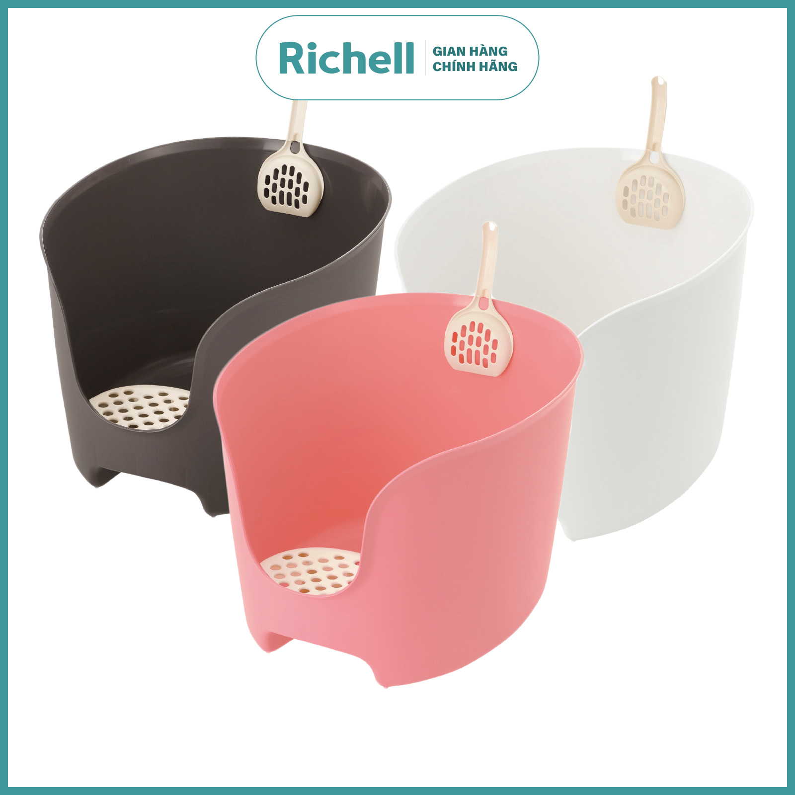 Khay vệ sinh Thành cao Richell Chống văng cát cho Mèo kèm Xẻng