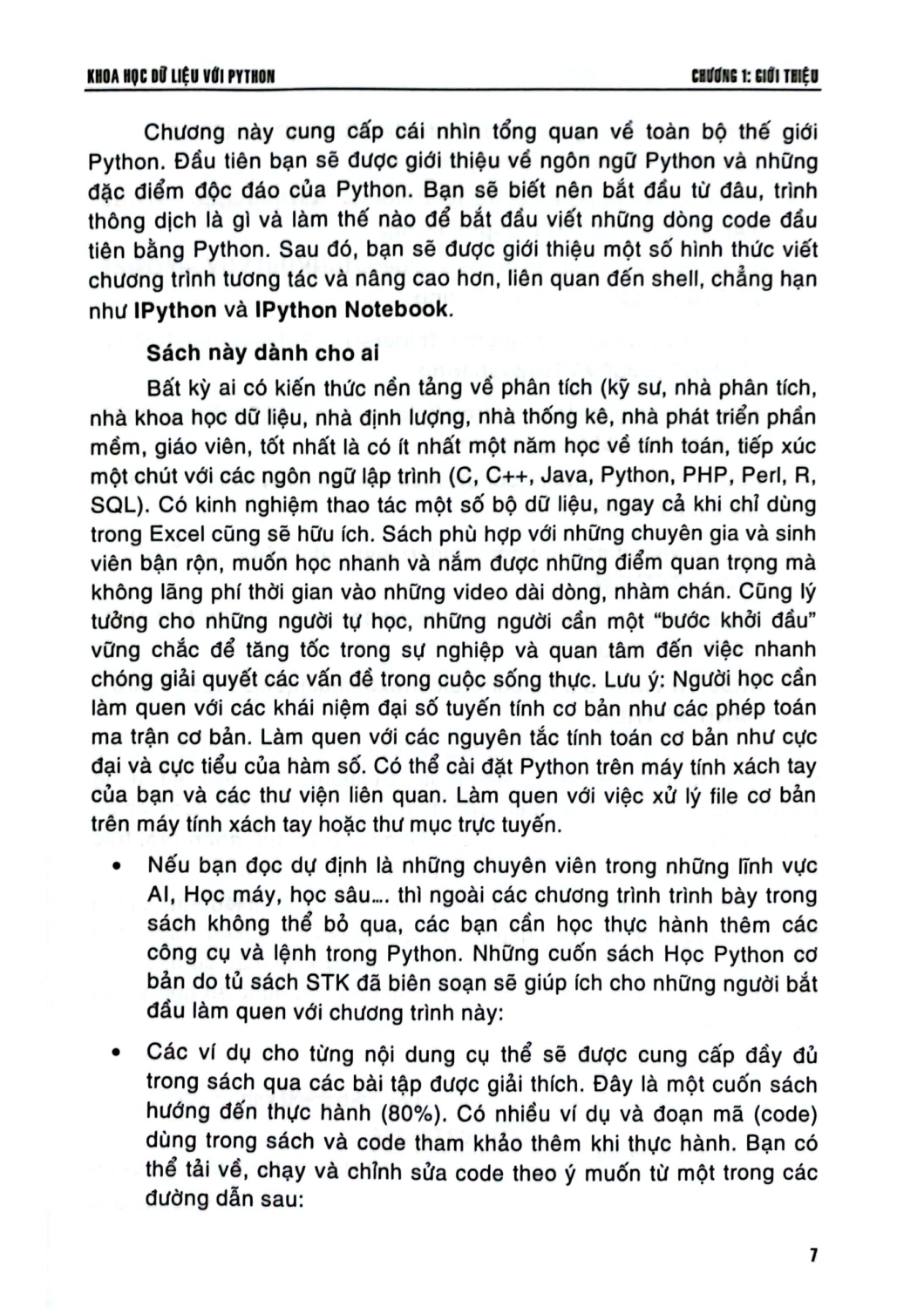 Khoa Học Dữ Liệu Với Python Sách Khoa học dữ liệu với Python được trình bày với 424 trang khổ 16 x 24 cm qua 7 chương và 1 phụ lục: Chương 1: Giới thiệu