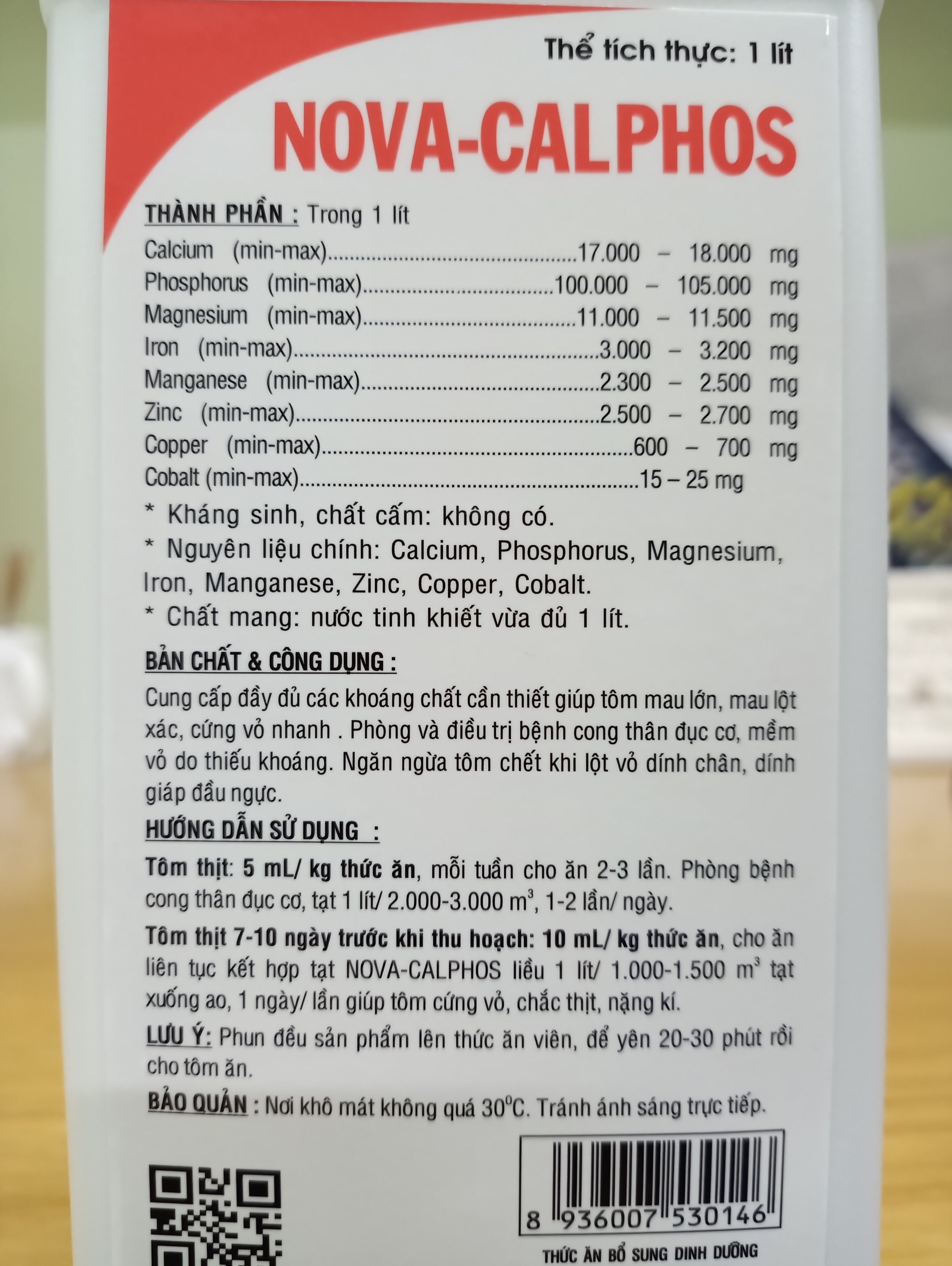 Anova Nova Calphos là dòng khoáng cao cấp chuyên dùng để kích thích tôm trong giai đoạn lột xác, giúp tôm lột xác nhanh hơn, đặc biệt là nhanh cứng vỏ hơn.