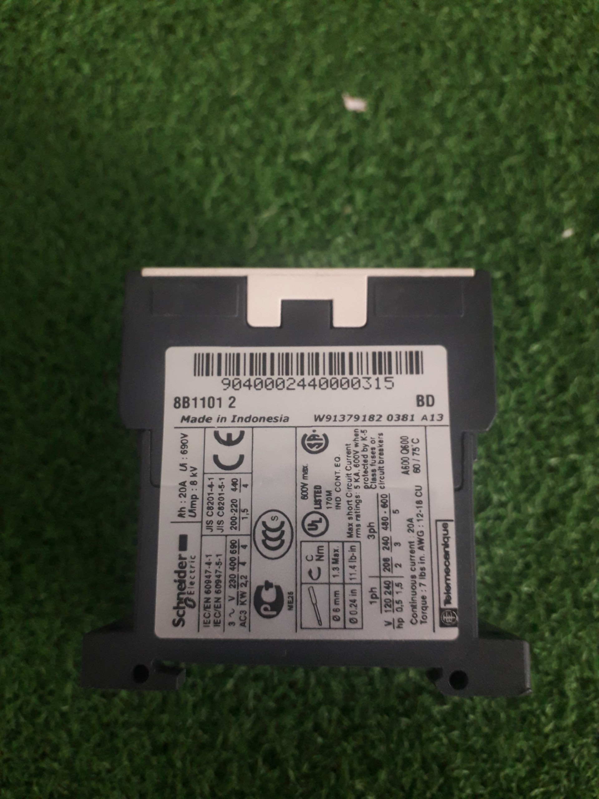 Mô tả Công suất: 7HP, 5.5kW Điện áp: 380V 12A Cuộn dây điều khiển bằng điện áp AC 48V Tích hợp 2 điểm phụ 1NO, 1NC
