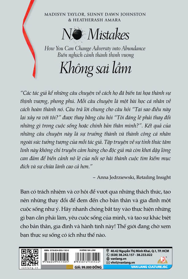“Các tác giả kể những câu chuyện về cách họ đã biến tai họa thành sự thịnh vượng, phong phú. Mỗi câu chuyện là một bài học cá nhân về cách hoàn thành nó. Câu trả lời chung cho câu hỏi “Tại sao điều này lại xảy ra với tôi?” được thay bằng câu hỏi “Tôi đáng lẽ phải thay đổi những gì trong cuộc sống hoặc chính bản thân mình?”. Kết quả của những câu chuyện này là sự trưởng thành và thành công cá nhân ngoài sức tưởng tượng của mỗi tác giả. Tập truyện về sự tỉnh thức tâm linh này không chỉ truyền cảm hứng cho độc giả mà còn khơi dậy lòng can đảm để biến cảnh nô lệ của nỗi sợ hãi thành cuộc tìm kiếm mục đích và sự chữa lành cao cả hơn.”